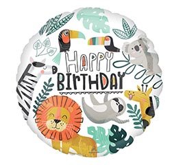 Take a walk on the wild side with this vibrant safari-themed foil balloon! It features a collection of adorable jungle animals and a festive design, making it the perfect centerpiece for a safari or zoo-themed birthday party. Made from high-quality mylar foil.